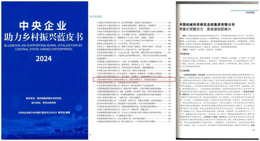 国务院国资委发布了《中央企业助力乡村振兴蓝皮书(2024)》,集团申报的《党建引领聚合力 系统谋划促振兴》案例成功入选了2024年中央企业助力乡村振兴典型案例。